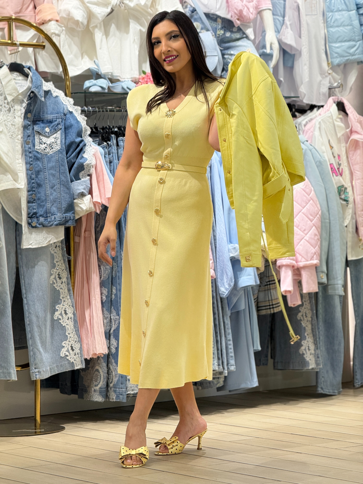 Poart-o cu pantofi cu toc sau balerini pentru o apariție impecabilă, în orice moment al zilei. Această rochie este alegerea perfectă pentru orice context.