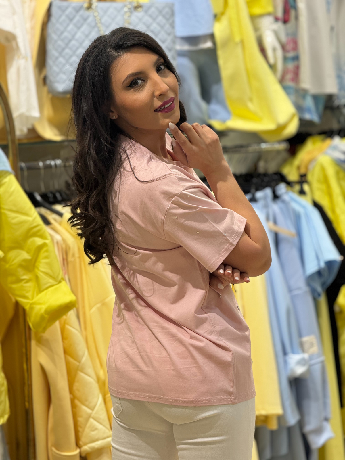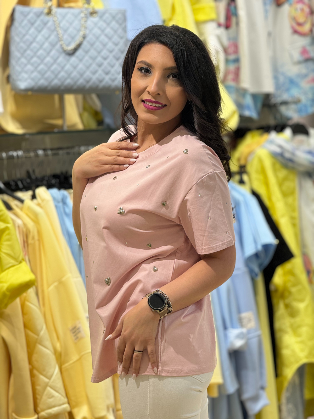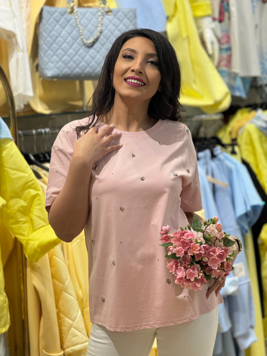 • Tricou stilat cu aplicații metalice.
