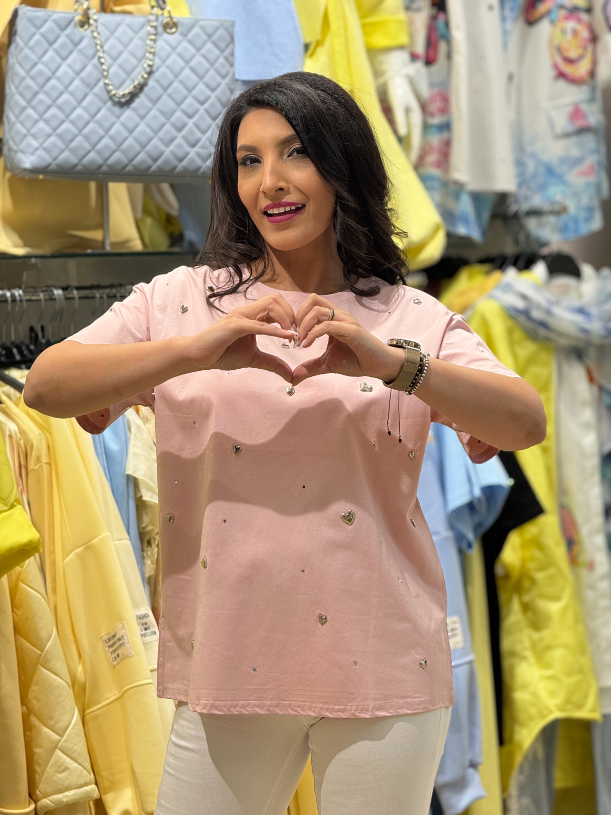 • Design romantic cu inimioare delicate.