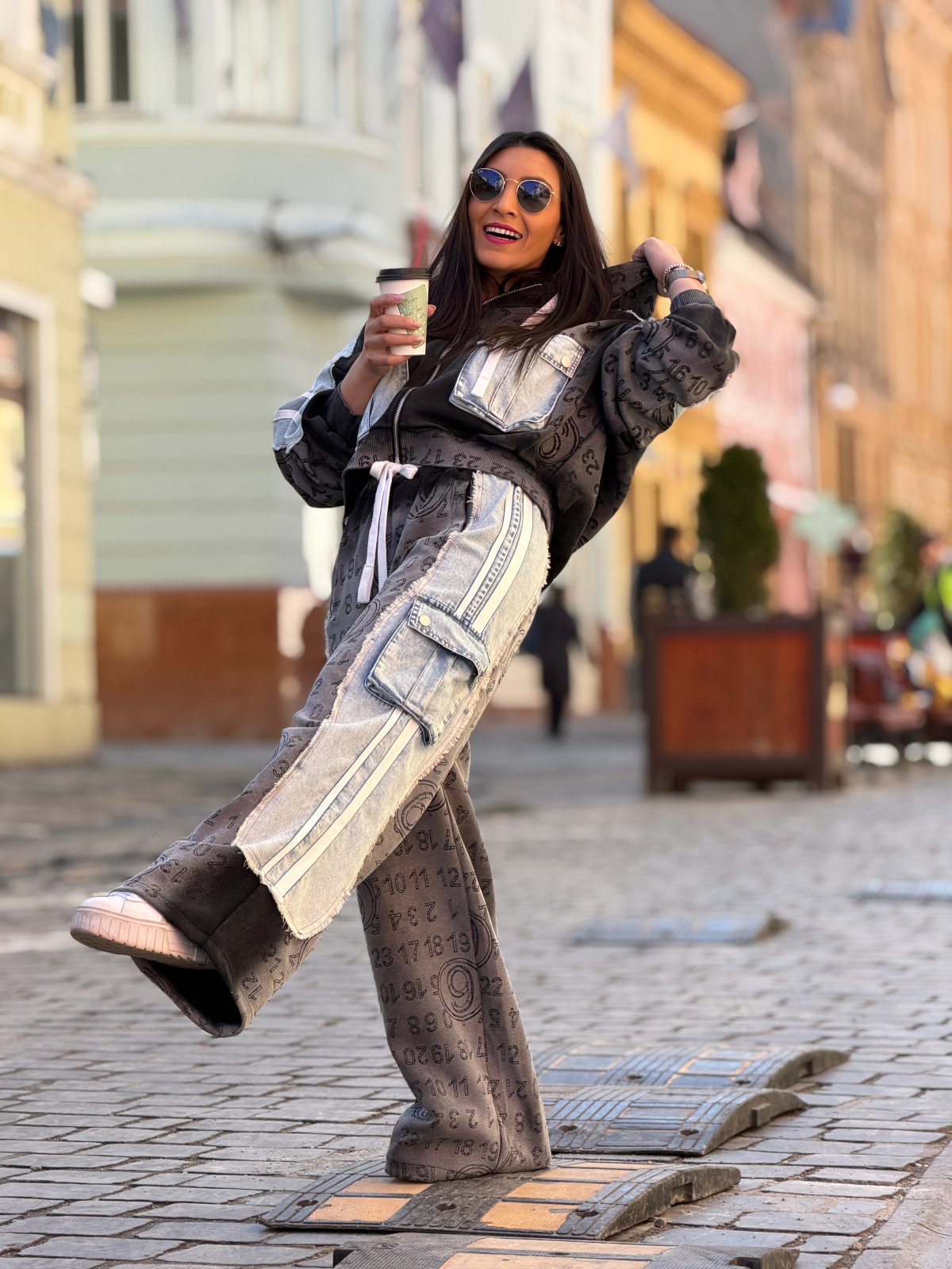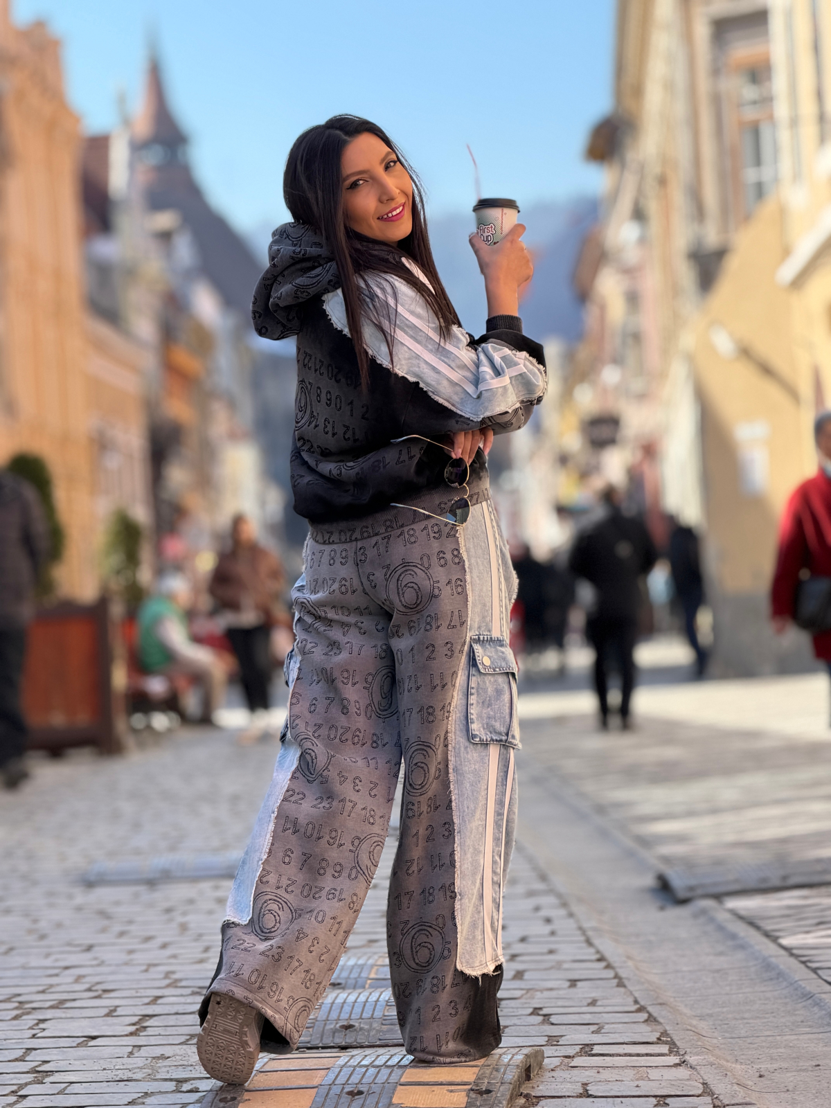 Acești pantaloni cu scris modern și detaliu din blug sunt perfecți pentru a-ți exprima stilul personal. Te vei simți liberă și încrezătoare în orice situație.
