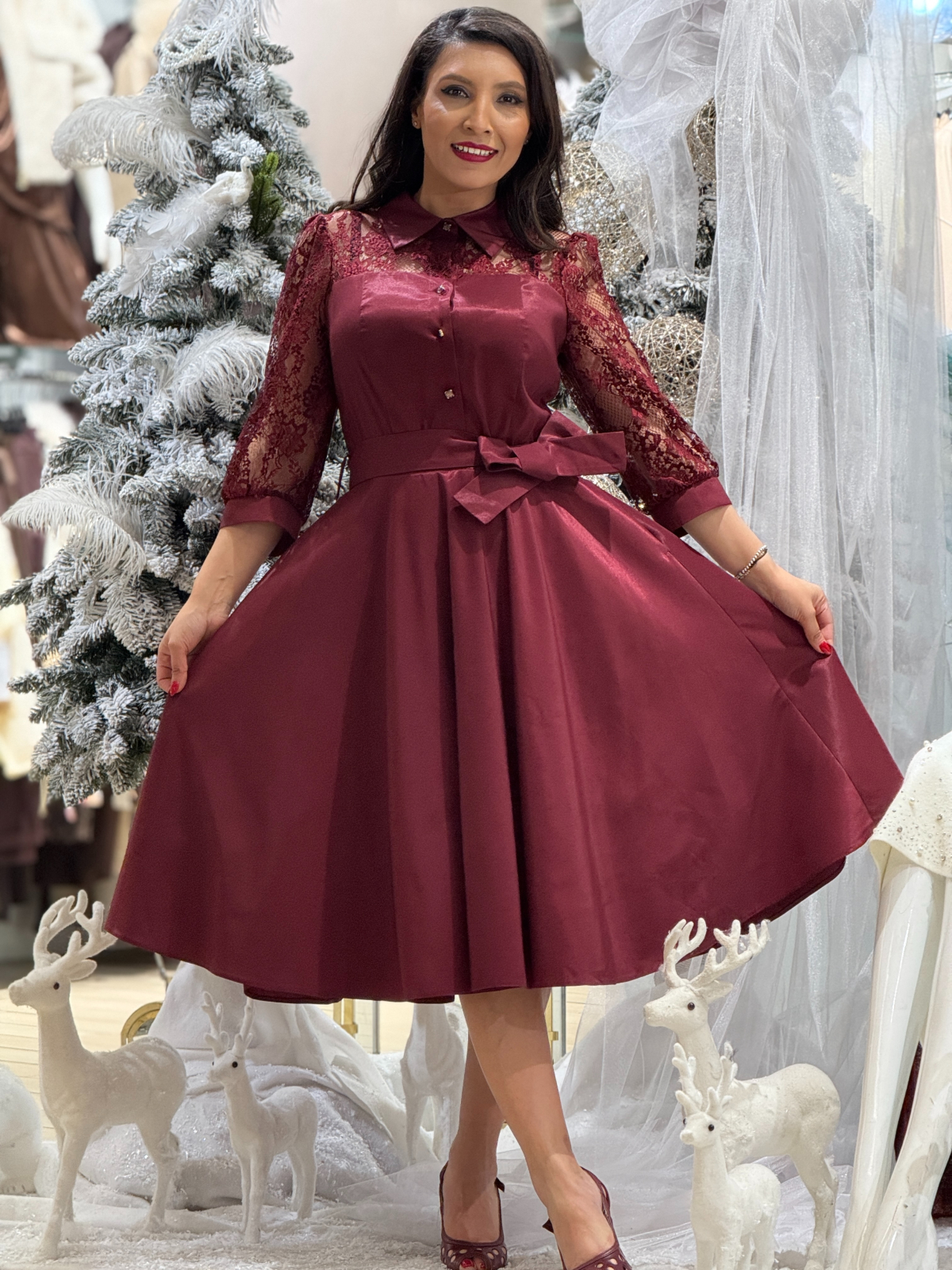 Rochie din tafta cu maneci din dantela