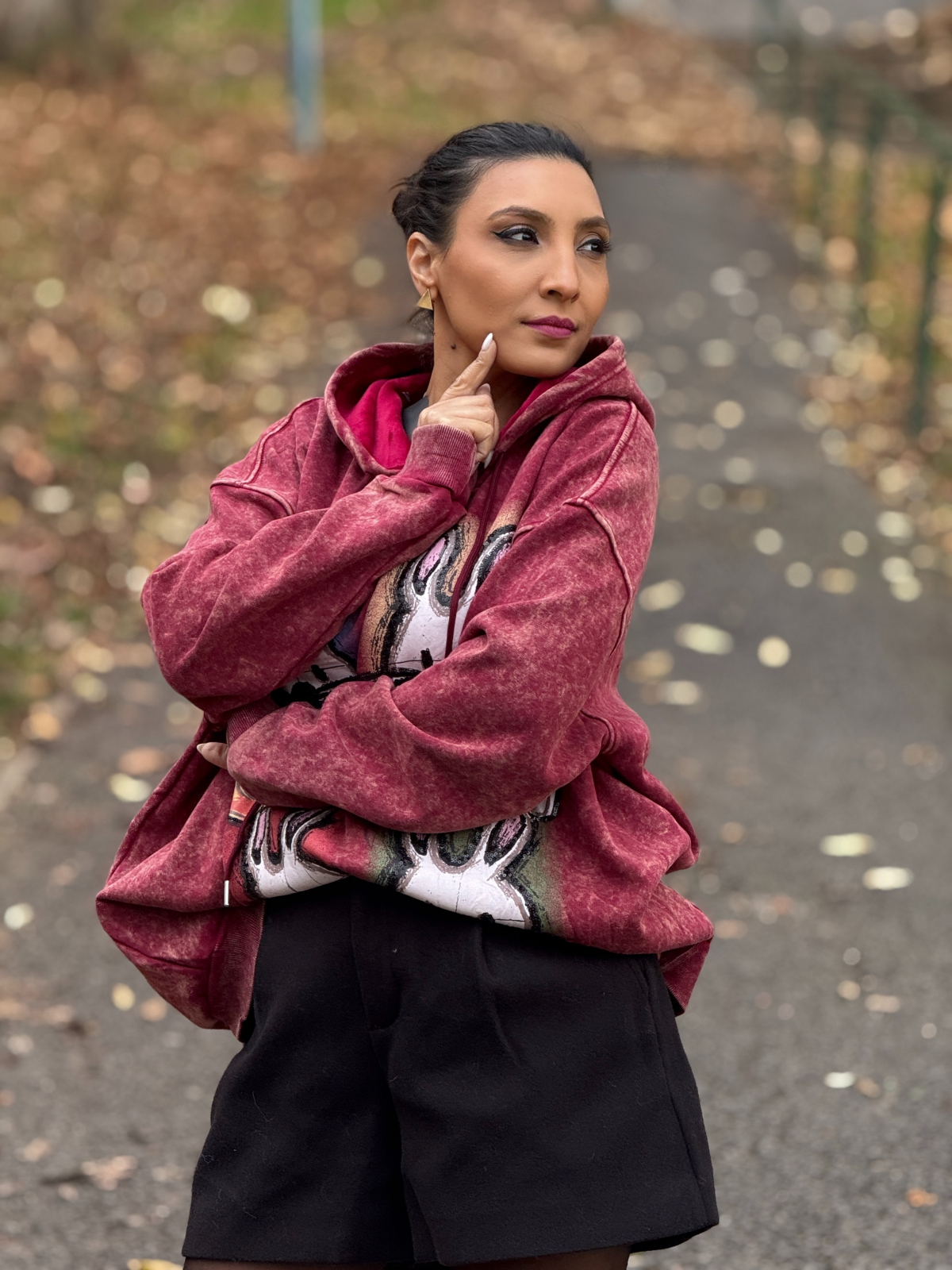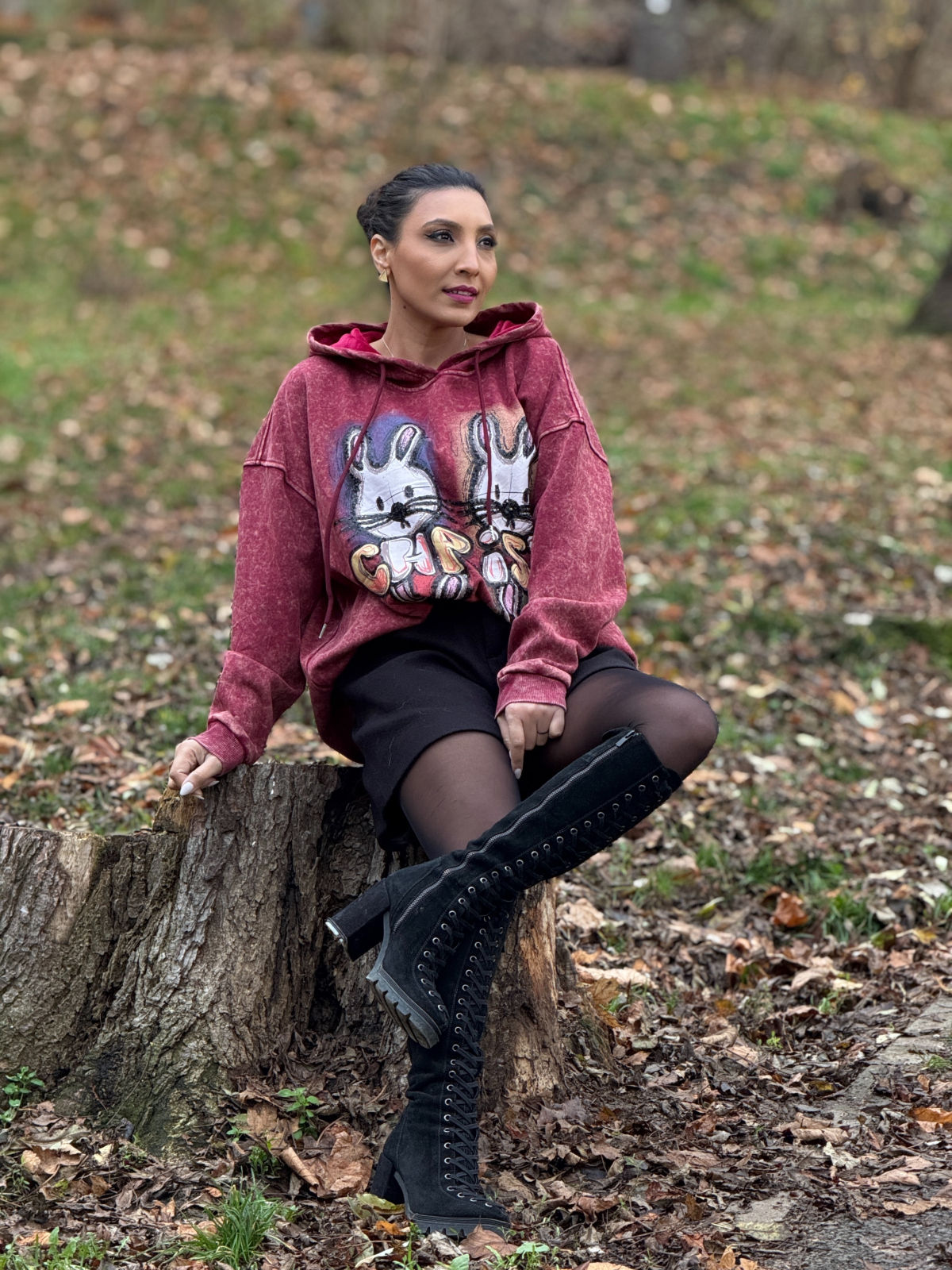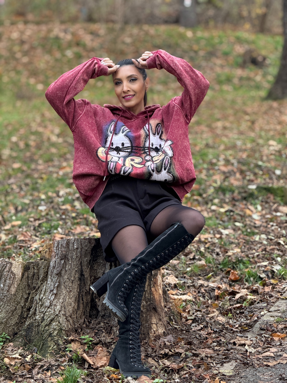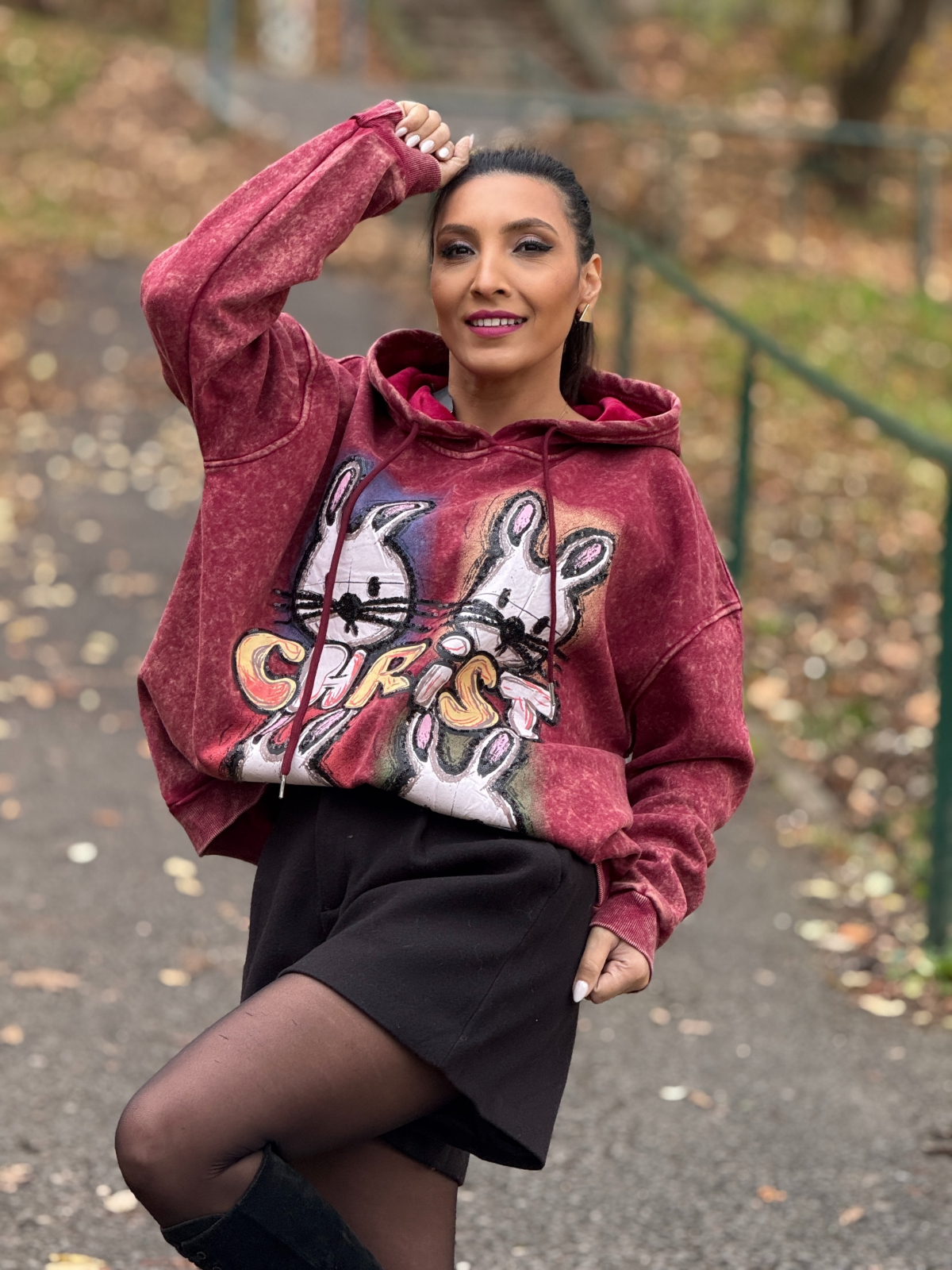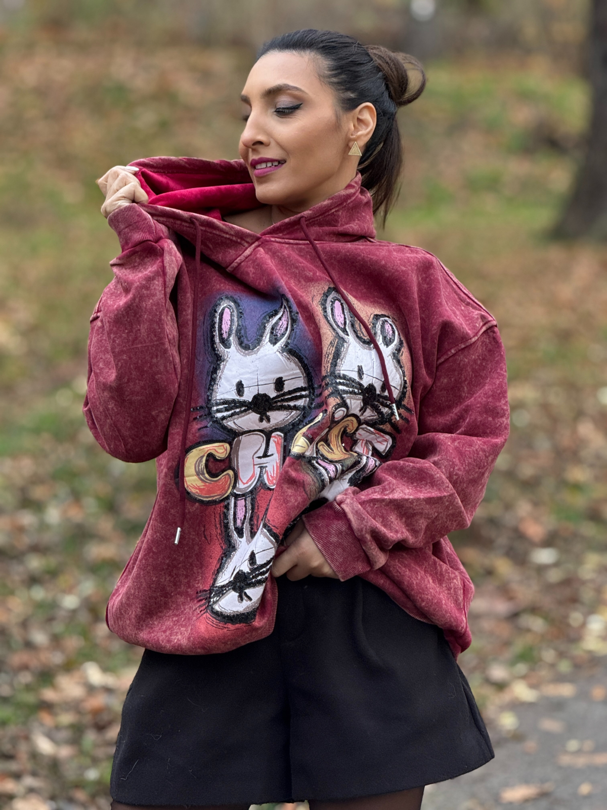 Hanoracul vătuit cu imprimeu iepurași este o piesă călduroasă și prietenoasă, ideală pentru zilele reci în care vrei să te simți bine, dar și să arăți bine.