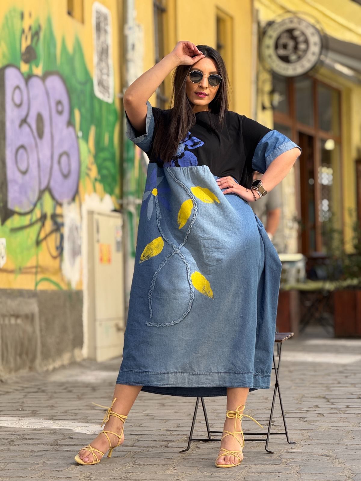 Rochie cu floare albastra cu galben