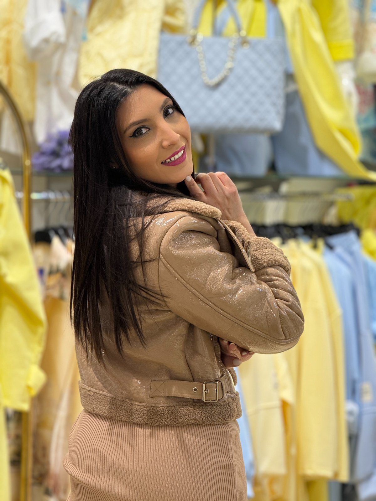 Cojocelul scurt cappuccino este alegerea perfectă pentru zilele reci în care îți dorești un look feminin, dar și confortabil.